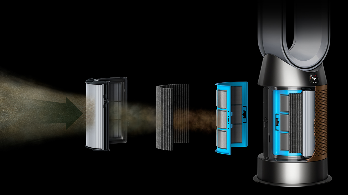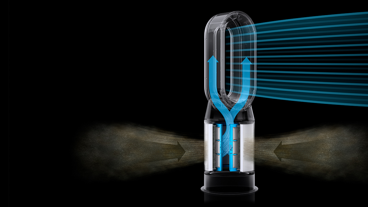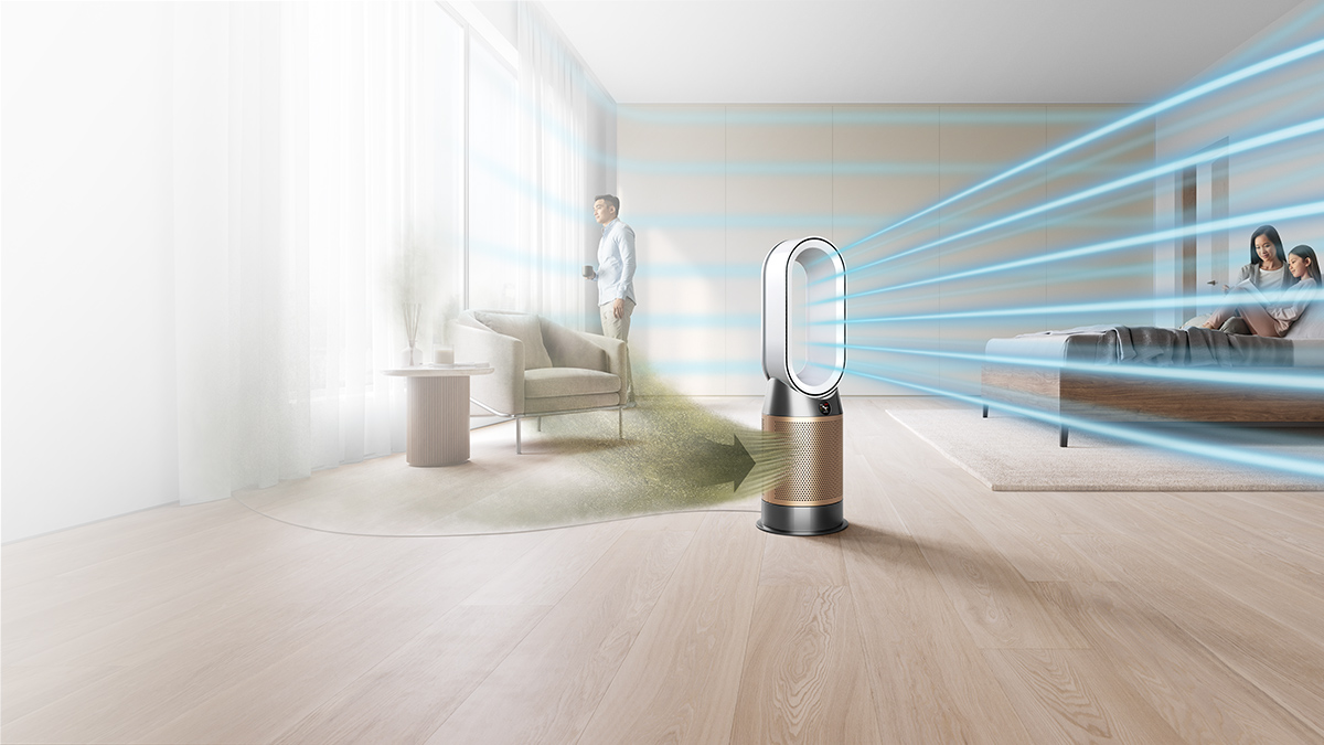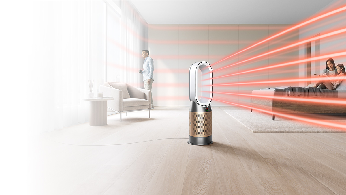 1Third party full machine testing based on GB/T 18801-2018 formaldehyde cumulative clean mass testing with continuous injection until plateau of formaldehyde CADR is achieved. Results may vary in practice. 2Tested for filtration efficiency at 0.1 microns (EN1822, ISO29463) 3In maximum setting. Tested for air projection, purification coverage in a 81m3 room. 4Particle challenge by DEHS oil specified in EN1822 within a chamber specified in ASTM F3150. Tested in Max Mode at IBR US, for whole machine efficiency above 99.95%. 5Gas capture rates may vary. 6Requires device to run app, Wi-Fi or mobile data, Bluetooth 4.0 support, and iOS version 10 or Android version 5 (or above). Standard data and messaging rates may apply. App control doesn’t apply to heating. 7Refer to the Dyson Link app for compatible voice services.