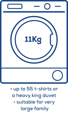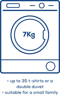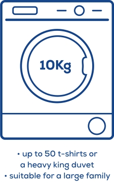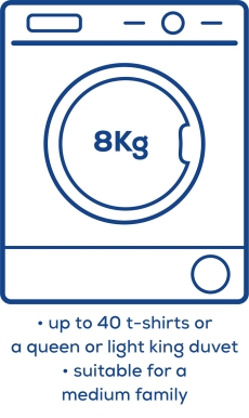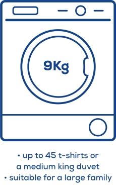 Tumble dryers come in a range of sizes, from compact models for individuals, right up to large capacity types for families. You can choose the best usable capacity that suits your needs. It’s important to remember that the usable capacity for your dryer will vary, depending on the type of items you’re drying. Drum capacity is usually quoted based on drying cotton items only; when drying synthetics like polyester, you should halve the advertised capacity.